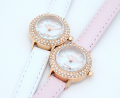 | ベゼルに飾ったスワロフスキーと立体的なカットガラスの相乗効果で、あなたの腕を華やかに彩ります。コーディネートしやすいホワイトと大人気のピンクゴールドの2色展開。 | ||