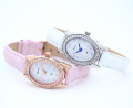 | 緩やかなカーブを描く丸みのあるケースとパウダーカラーのレザーベルトが、ナチュラルシックな装いを華やかに彩ります。 *メタルベルトタイプはこちら |