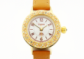 ケースのまわりにスワロフスキーをたっぷりあしらった上品なウォッチ。小さめのフェイスなので、華奢な体型の方にもぴったり。W2 ベージュのほか、W1 ブラック、W2 ネイビー、W3 パープル、レッドの5色のレザーベルトからお選びいただけます。時計のケース裏面に刻印いたします