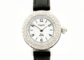 ケースのまわりにスワロフスキーをたっぷりあしらった上品なウォッチ。小さめのフェイスなので、華奢な体型の方にもぴったり。W1 ブラックのほか、W2 ネイビー、W3 パープル、G1 レッド、G2 ベージュの5色のレザーベルトからお選びいただけます。時計のケース裏面に刻印いたします