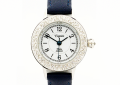 ケースのまわりにスワロフスキーをたっぷりあしらった上品なウォッチ。小さめのフェイスなので、華奢な体型の方にもぴったり。W2 ネイビー、W1 ブラック、W3 パープル、G1 レッド、G2 ベージュの5色のレザーベルトからお選びいただけます。時計のケース裏面に刻印いたします