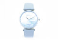 文字盤に真珠母貝(マザー・オブ・パール)をモザイク調に飾ったエレガントウォッチ。スワロフスキーを12時、3時、6時、9時の4箇所に飾って美しい輝きをプラスしました。バンドはしなやかで付け心地の良いイタリアンレザーバンドを採用。*W1 ブルーの他にW3 ピンクもあり。
