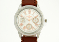 | 立体的でシャープなダイヤルとデザイン、ケース側面に配したカラーがポイント。マルチファンクション機能(日付、曜日、24時間計表示)が付いたハイグレードウォッチ。バンドは栃木レザー社製のベジタブルタンニンレザーを使用。W2 ブルー/W3 ブラックもあり。 | ||