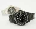 | ホームタイムとローカルタイムをセットすると海外でも使用可能。IPメッキを施したブラックとシックなシルバーの2色あり。あなたのスタイルに合わせてお選びください。 | ||