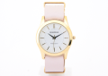 女性らしい優しい雰囲気を醸し出す本牛革のベルトが腕になじむウォッチ。ローマ数字の文字盤には縦縞の繊細なギョーシェ彫りが施されています。ベルトカラーは3色。G1 スモーキーピンクのほか、W1ヌードベージュ 、G2 キャメルもあり。