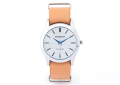 ニュートラルカラーの本革ベルトが腕になじむエレガントウォッチ