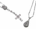 スワロフスキーをあしらったドロップ型のネックレスと、そのドロップの先にゆらゆらと揺れるクロスをつけた2タイプ。胸元にキラリと光る気品のあるデザインです。