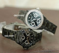 | イオンプレート・コーティング(IP)をほどしたシックなブラックボディが印象的。男性用もあるのでペアで装着しても○。カレンダー機能、24時間計付き。 ピンクゴールドはこちら。 |
